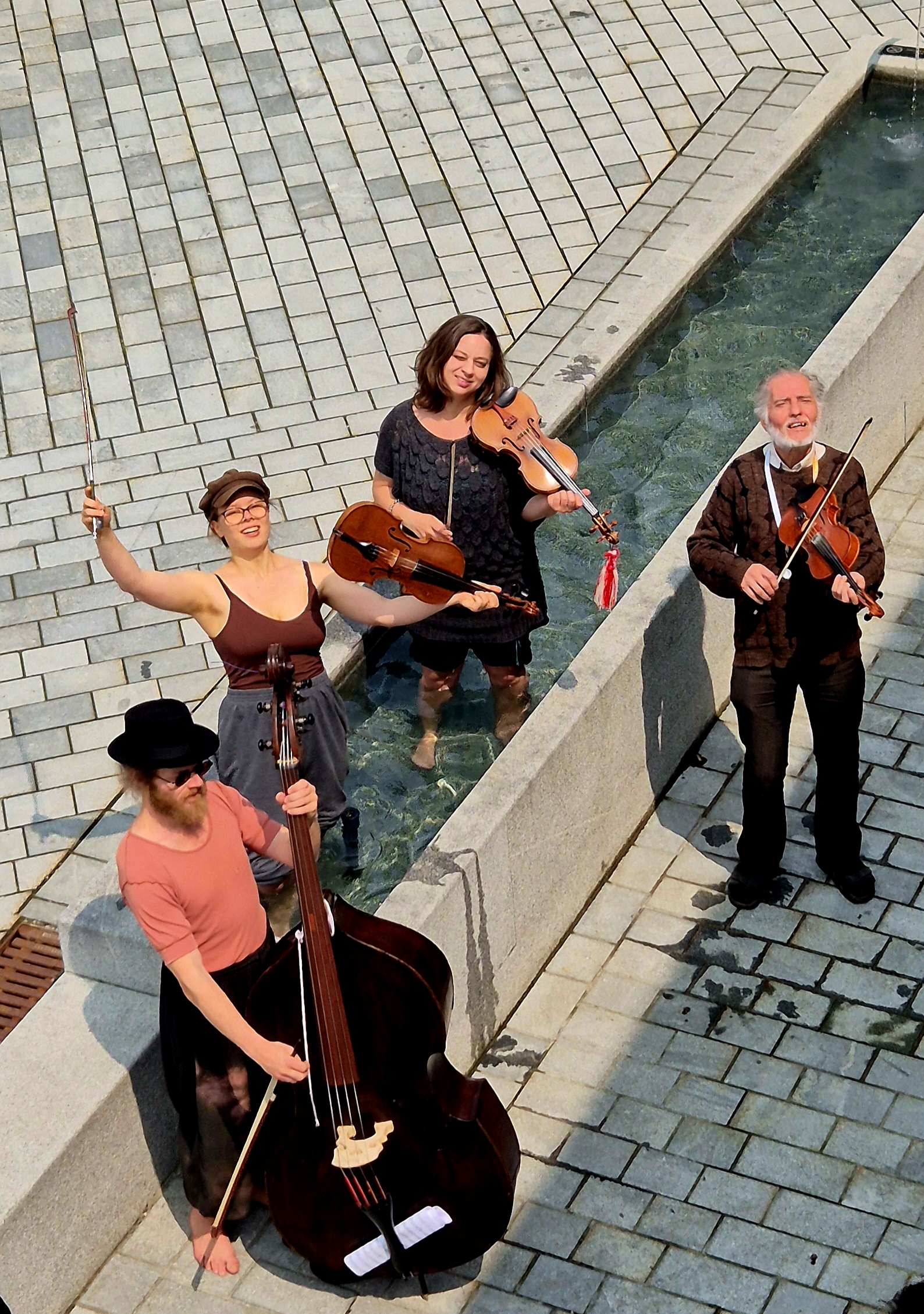 “Die Paradeiser” sind ein junges Projekt aus volksmusikbegeisterten Mitgliedern zwischen 20 und 70 Jahren. Mit dem legendären und renommierten Landlergeiger und Volksmusikforscher Hermann Fritz in ihrer Mitte tauchen die vier in eine fast vergessene Welt aus Streicherklängen ein. Landler, deren schräger Rhythmus irgendwo zwischen 3/4 und 4/4 liegt wechseln sich mit groovigen Schleunigen aus dem Salzkammergut, aber auch ohrwürmigen Walzer, Polkas oder Boarischen ab. Ergänzt wird das Programm durch ungarische Czardas, Slowakische Romaweisen, Klezmer- Hochzeitsstücke oder Serbische Kolos.